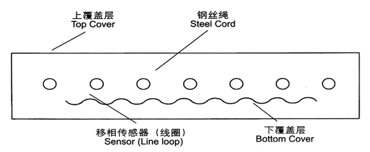 采用新結構型做抗拉體在鋼絲繩芯輸送帶的芯膠與下覆蓋層間,沿縱向按一定距離埋設移相傳感器(線圈)。